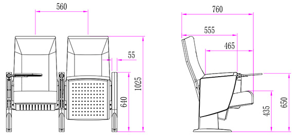 2.座椅基本中心距为560±5mm,座包打开侧深760±5mm,基本椅高为1025±5mm,最小排距:950mm。